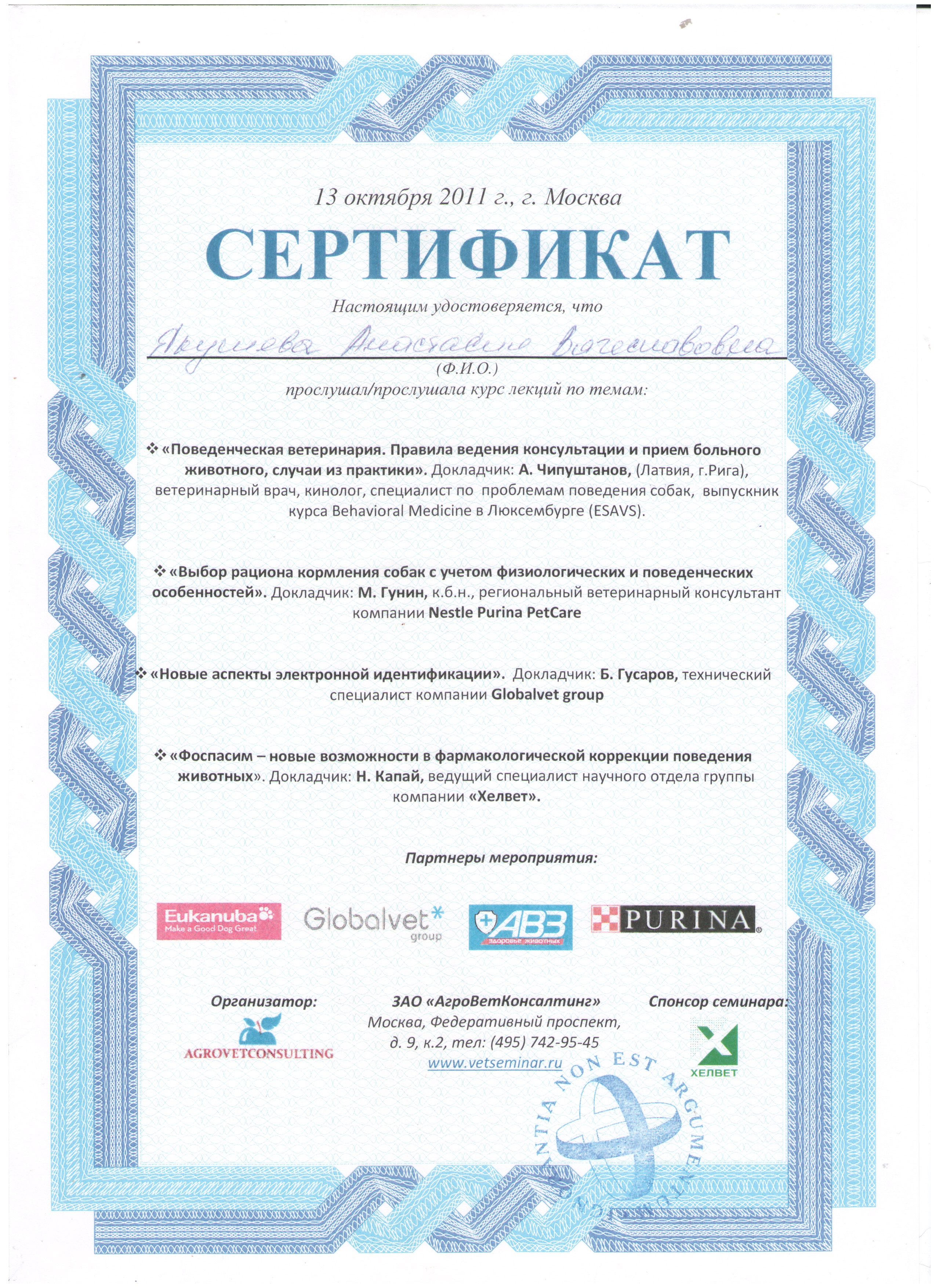 Прошла курсы по повышению квалификации по зоопсихологии.